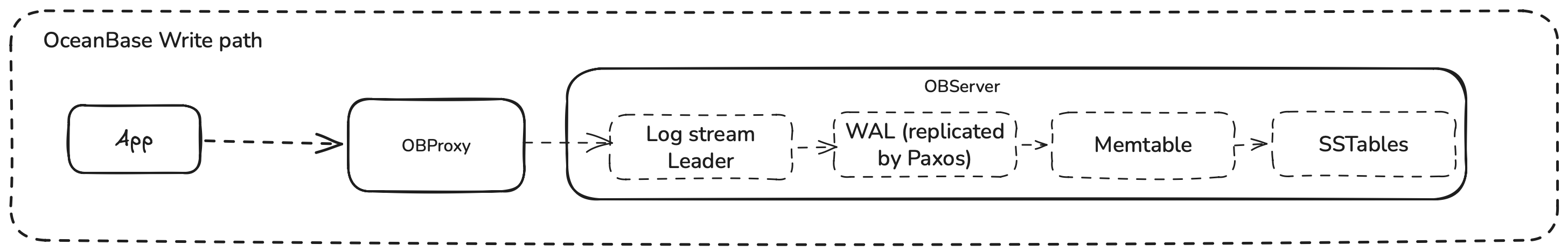 OBProxy figures out which Log Stream owns this row and sends the request to the leader of that Log Stream. Only the leader can accept writes.